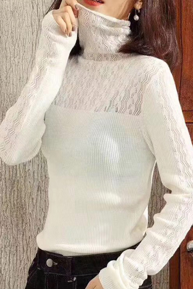 Áo len cổ lọ ren cổ White