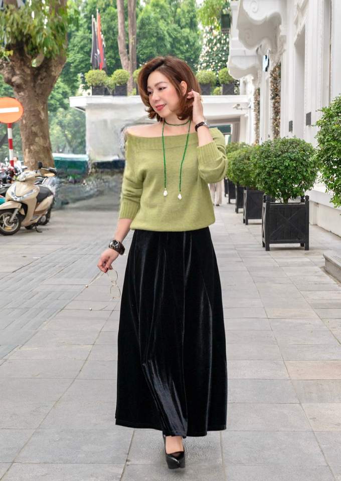 Áo len cổ thuyền dài tay bo cửa tay Green