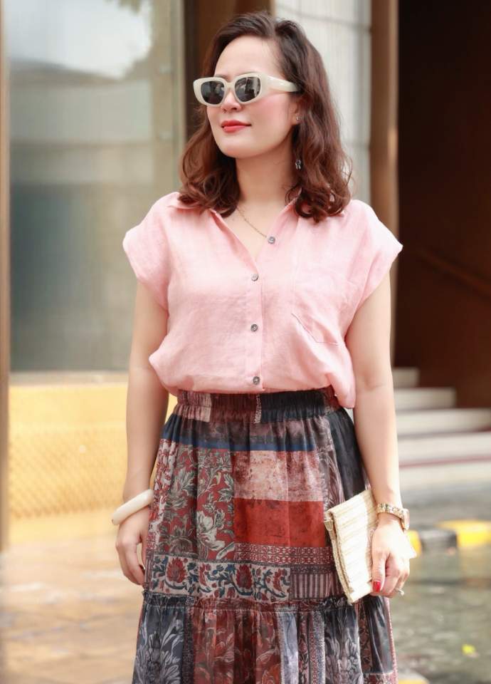 Chân váy 3 tầng can ngoài tơ Brown Floral 2