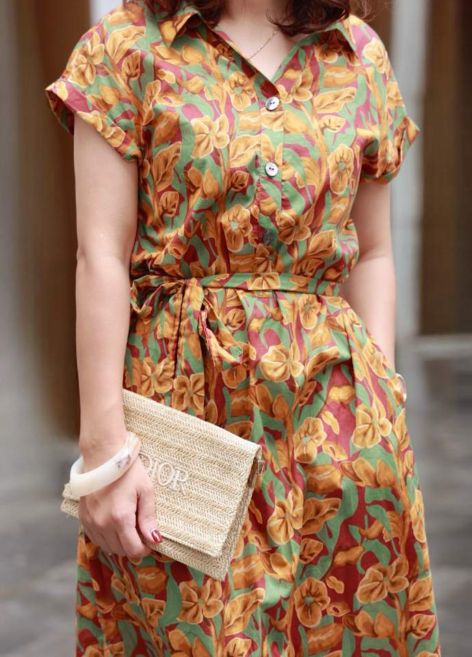 Hãy là người đầu tiên nhận xét “Đầm cổ đức trụ V Brown Floral”