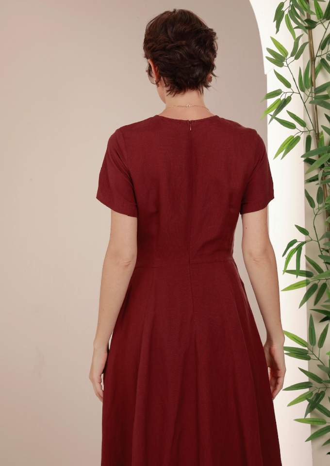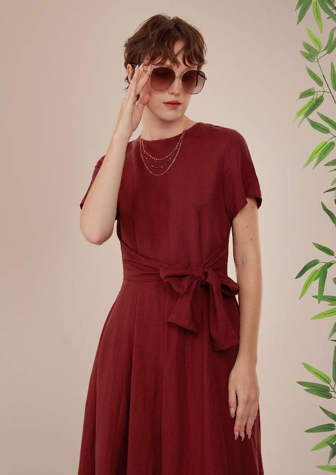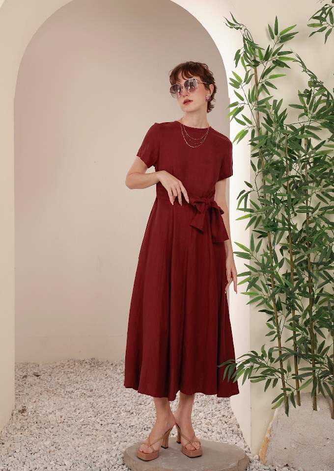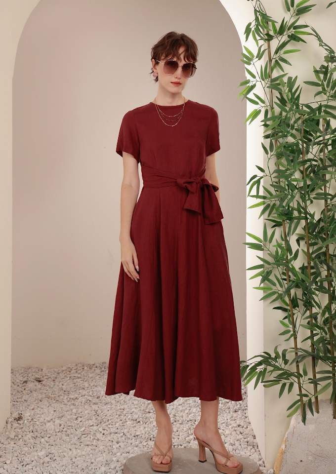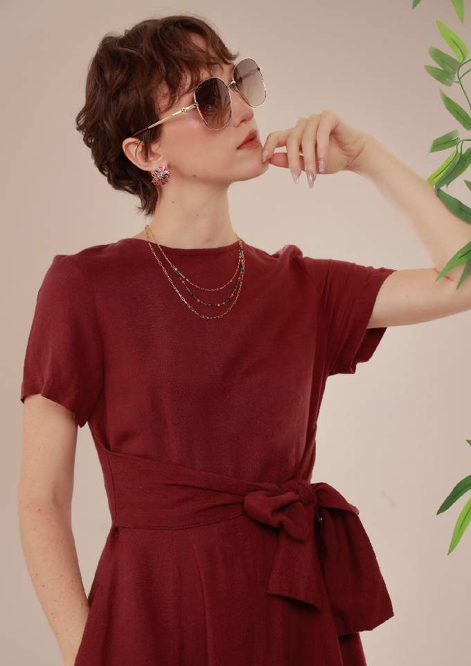 Đầm có tay chân 8 mảnh đai liền Plum