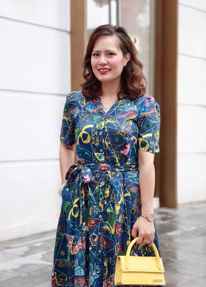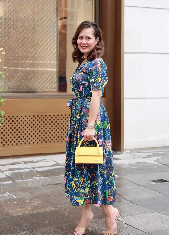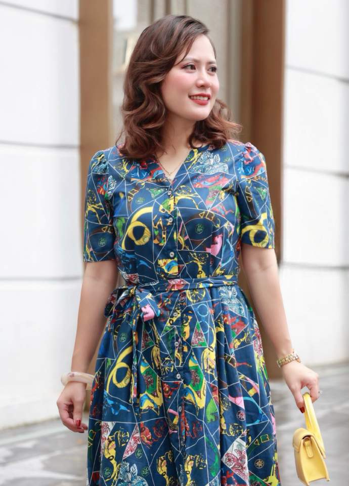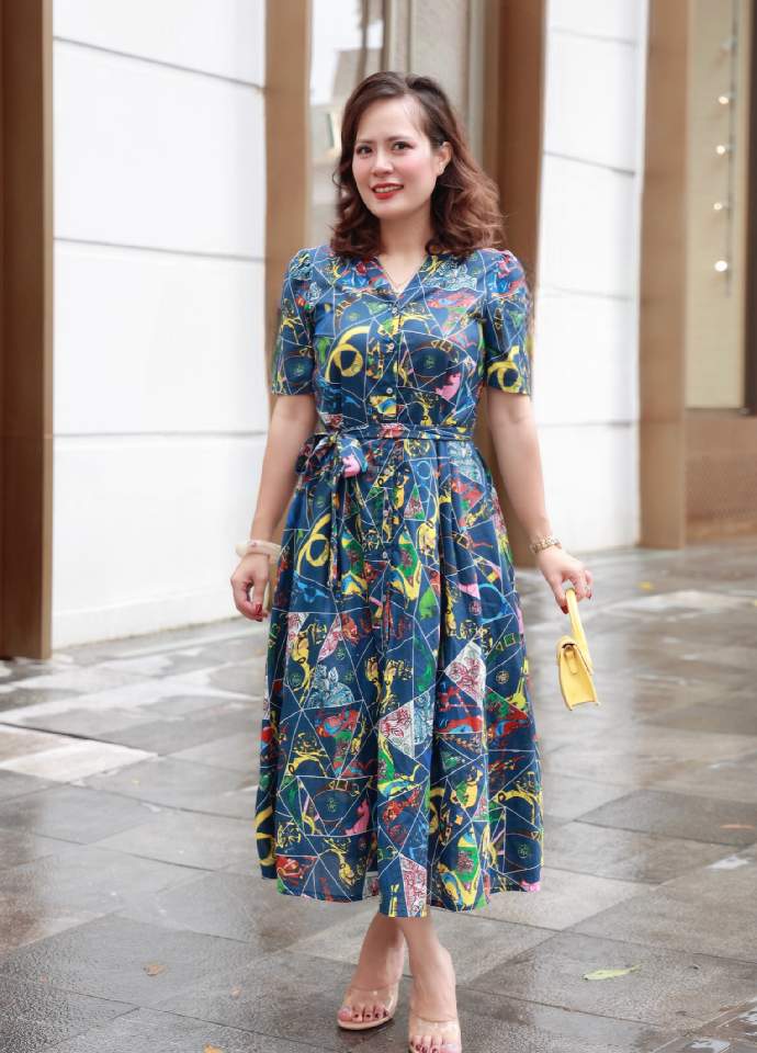 Đầm cổ tròn mở V can eo chân xếp ly Navy Floral