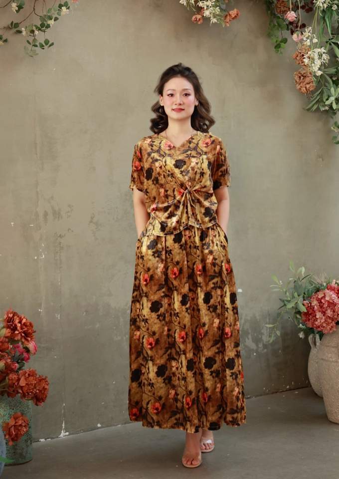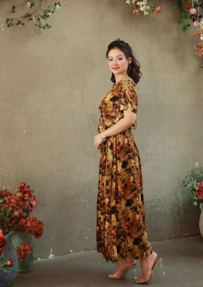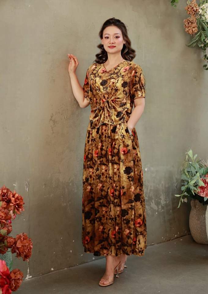 Hãy là người đầu tiên nhận xét “Đầm nhung đính hoa cổ tim chun eo Yellow Floral”