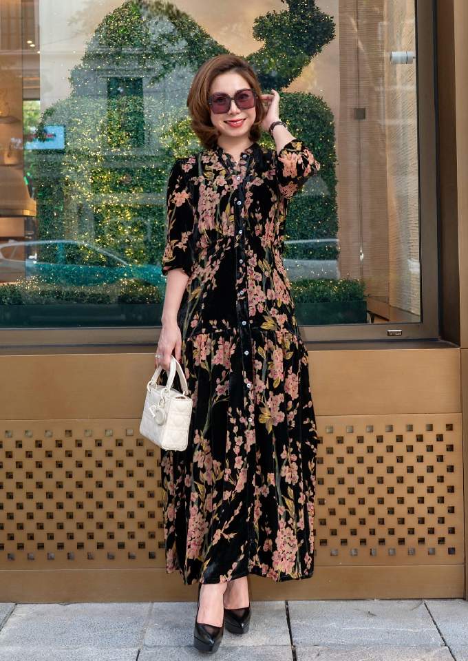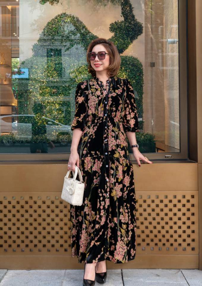 Hãy là người đầu tiên nhận xét “Đầm nhung hoa cổ tàu can dúm eo và hông Black Pink”